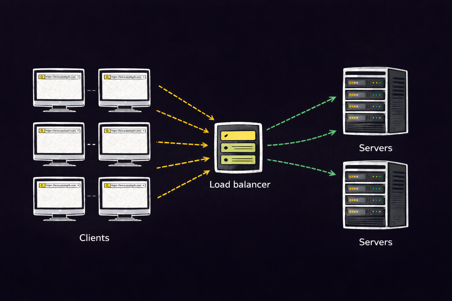 - применяется балансировка нагрузки (load balancing), чтобы равномерно распределять запросы между серверами;
